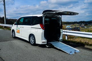 使用致します車は、車いすやストレッチャーをそのままスロープよりご乗車頂けます福祉車両を使用致しますので、大変便利に乗り降りが可能となっています。