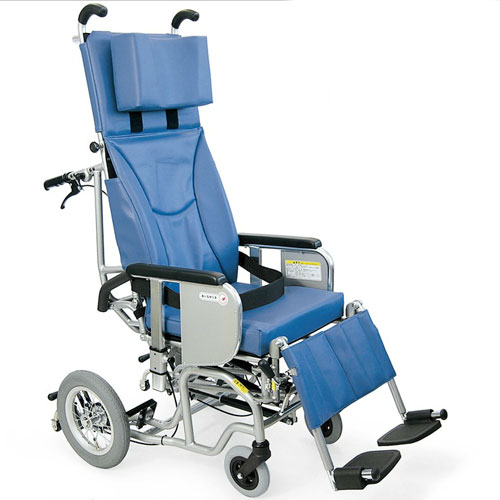 簡易ストレッチャーにも使えるリクライニング角度170度で安心快適です。またティルト機能もあり、重心を背中側にも分散出来るので姿勢保持が困難な方でも安心快適に使用できます。 こちらの車いすは有料となっています。